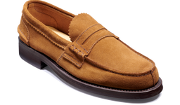 A collaborative Saxone Loafer made by Barker on the 294 last from premium suede leather on a Dainite rubber sole.