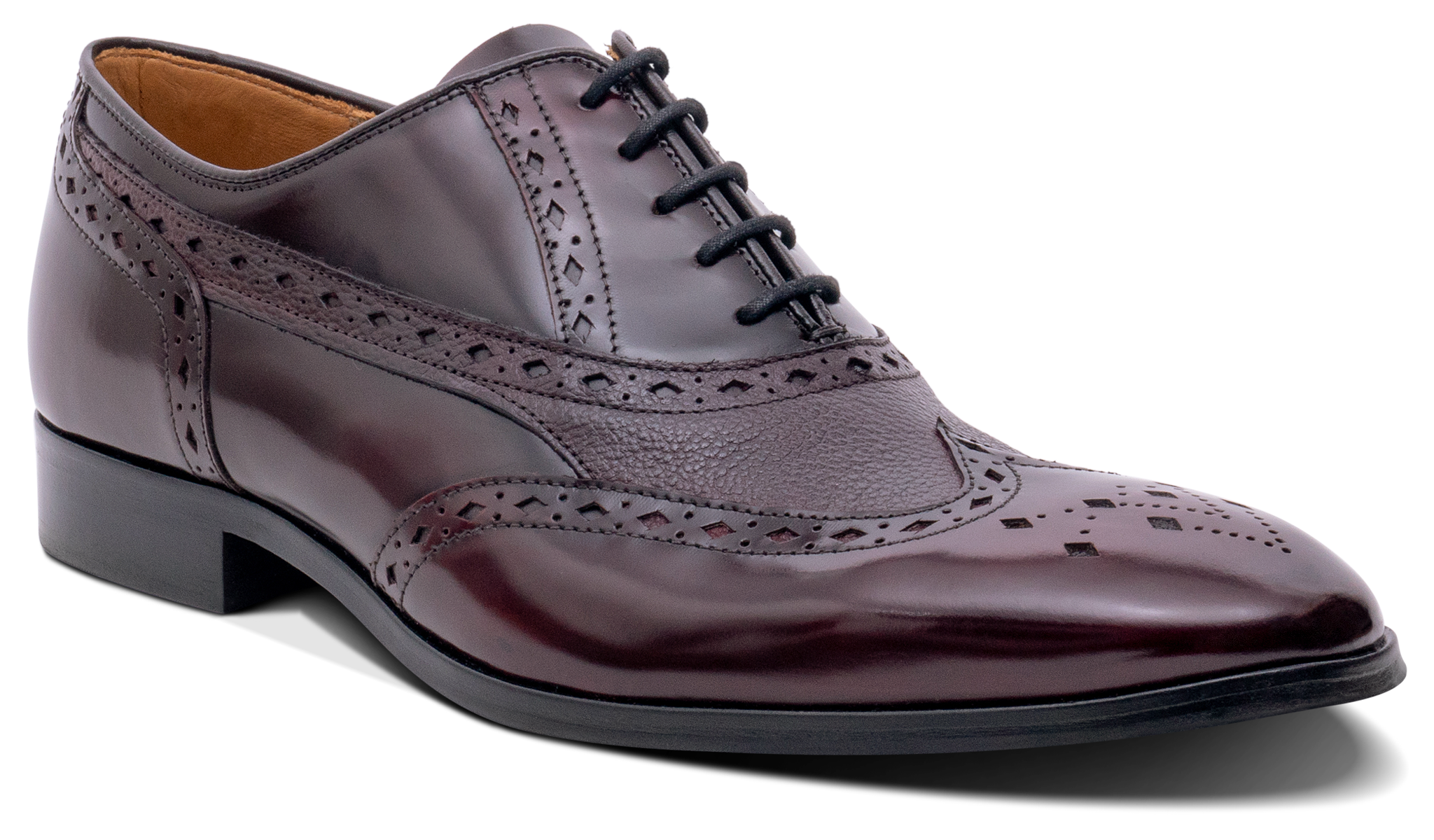 Introducing the Bampton Oxford Brogue, a true embodiment of classic elegance and sophistication. Designed in England and made in our partner factory in Portugal, this dress oxford brogue is perfect for any formal occasion. The diamond punch detailing adds a touch of decorative elegance, while the combination of high shine and grain leather creates a striking contrast, ensuring that this shoe will make a statement wherever it is worn.