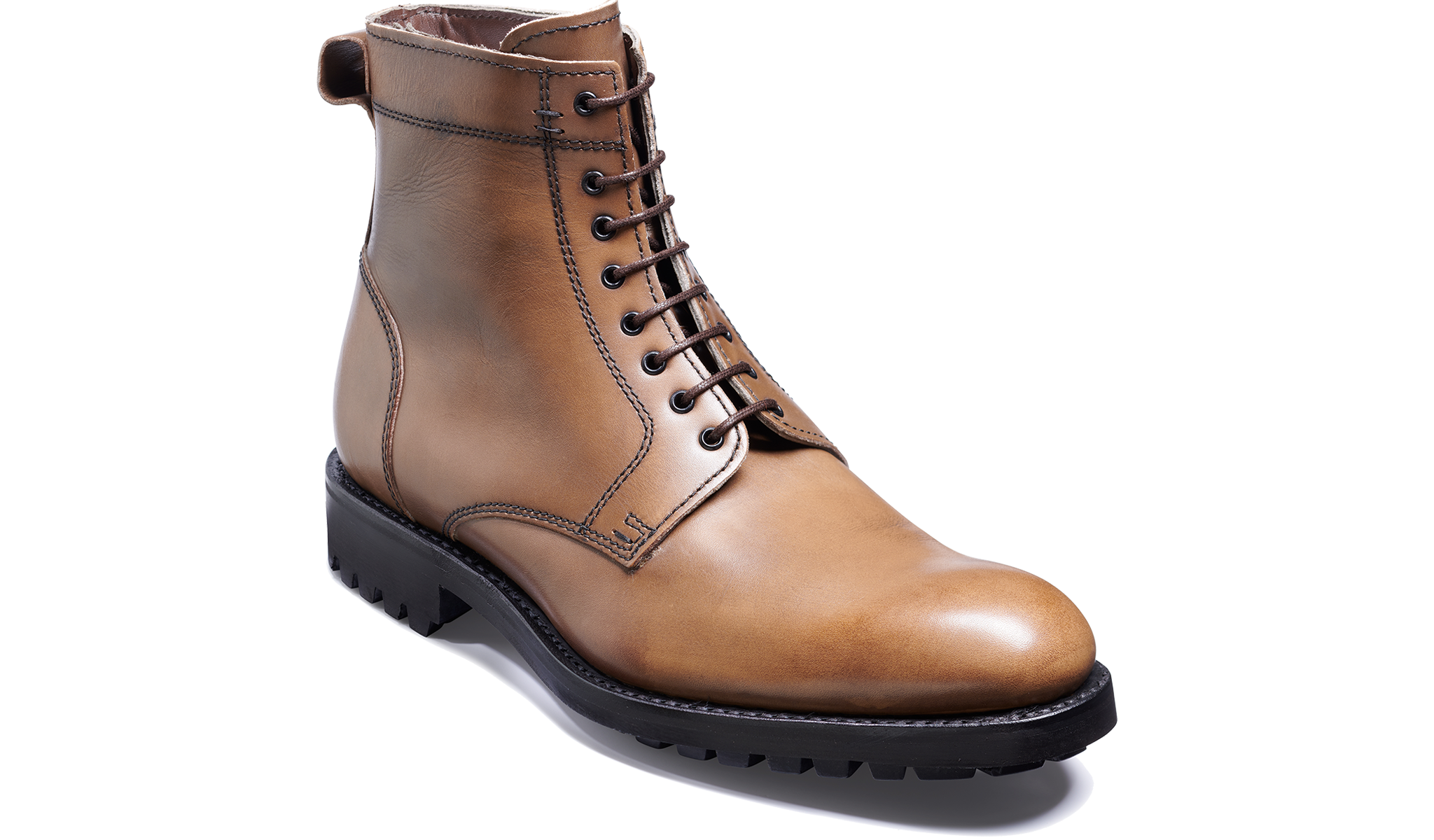 Logan is a plain toe Derby boot made exclusively for Barker online on the 460 last from calf leather on a Itshide Commando rubber sole.